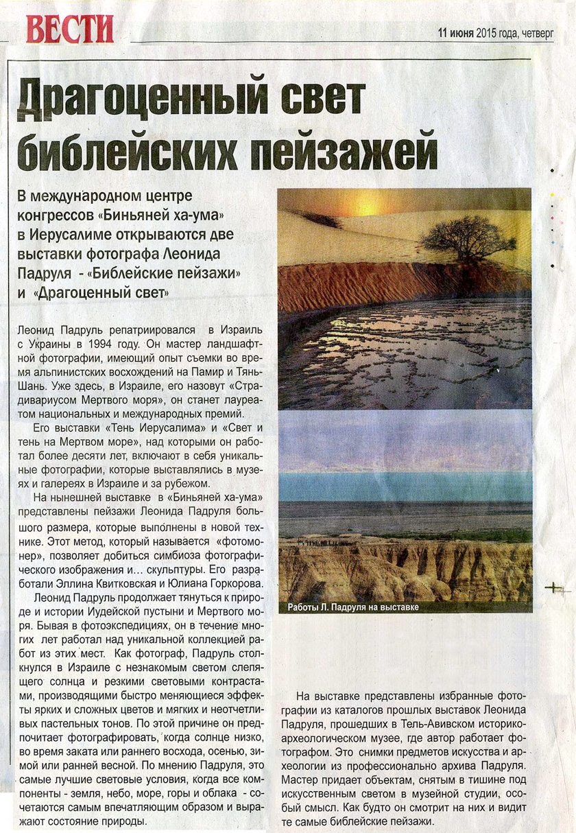 בנייני האומה גאה להציג: שתי תערוכות של הצלם לאוניד פדרול התערוכות:"אור יקרות" ו"נופים מקראיים" בתאריכים 11/06/2015 – 01/12/2015 כתובת - בנייני האומה, שדרות שז"ר 1, ירושלים שעות פתיחה בימים א'-ה' בין השעות 10:00-16:00 בתיאום מראש: 02-6558508 מרכז הקונגרסים הבינ"ל - בנייני האומה